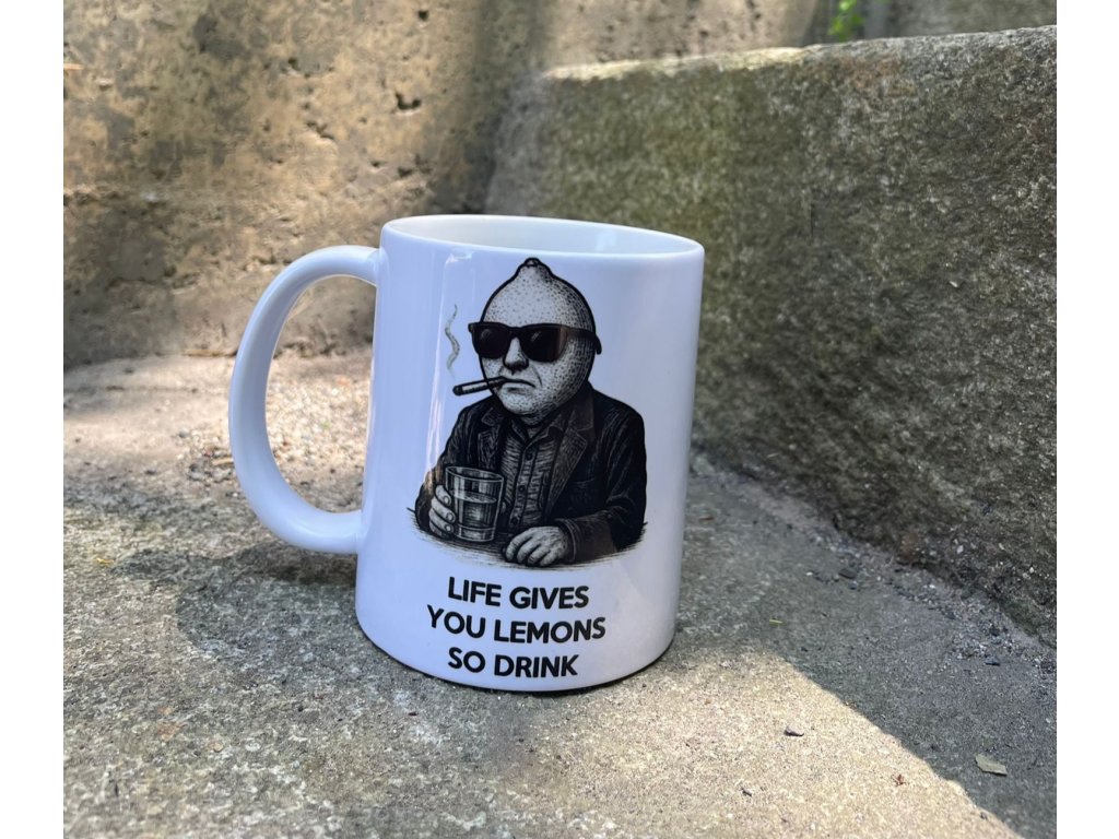 Tento keramický hrnek je ironickým manifestem pro všechny, kdo si ze života dělají limonádu po svém. Na jedné straně vás zdraví nekompromisní citron s doutníkem a sklenicí něčeho silného – spolu s textem „Life gives you lemons. You drink“. Na straně druhé najdete ostnaté logo Sour Pulp, které dává jasně najevo, že patříte k poezii s příchutí kyselosti.